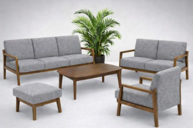 丁寧に仕上げられたフレームの曲線が美しいソファ