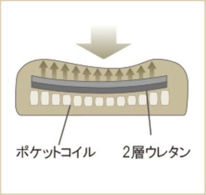![]() ポケットコイル 座面にはポケットコイルを使用。ひとつひとつのコイルが独立し点で身体を支えます。。 |