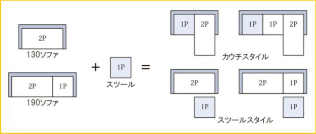 | ■組合せ例 お部屋のレイアウトに合わせて、左右の向きを組み替えできます。 |