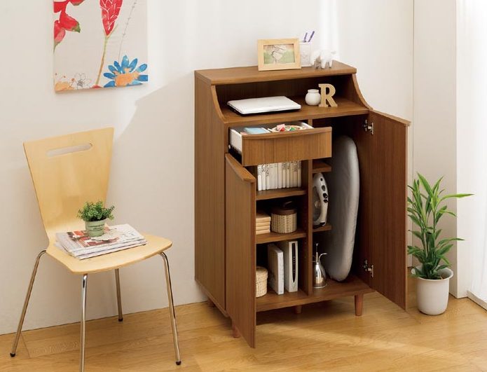![]() アイロン台も立てて収納できます。 |