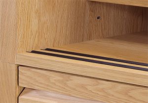 ![]() フルスライドレール 引出にはフルスライドレールを使用している為、奥のものまで出し入れが容易です。 |