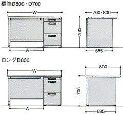 W1000〜W1200は中央引き出し1個付き
