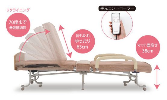 電動リクライニング 背もたれ無段階の電動リクライニングベッド |