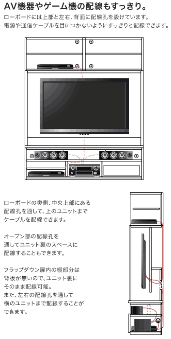 | 大画面テレビの「壁掛けスタイル」「スタンド置き」などお好みのスタイルですっきりと美しく設置できます。 お部屋のカタチに合わせて、オーダーでのサイズ変更が可能。 天井の梁などの突起に合わせたフィラーやサイドの余分な隙間を無駄なく使えるサイドボックスなど、 それぞれの空間にぴったりの収納がつくれます。 |