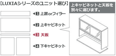 組み合わせに応じて「組み合わせ天板」、「シームレス一枚天板」よりお選びください。