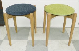 スツールはサブチェアとして使われることが多く、使わない時は部屋の片隅に置かれることが多いものですが、 このスツールならカラフルなファブリックがお部屋のアクセントにもなり、また何脚か積み重ねてもゴチャッとせず、スッキリとした印象です。
