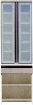 | ● | キャビネットのガラス扉には軽くて丈夫なアルミフレームを使用。ガラスは飛散防止効果フィルム貼りの安全仕様。 | |||