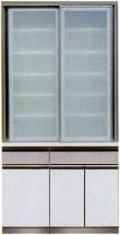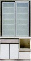 | ● | キャビネットのガラス扉には軽くて丈夫なアルミフレームを使用。ガラスは飛散防止効果フィルム貼りの安全仕様。 | |||