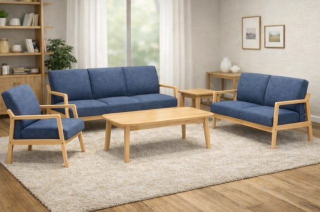 丁寧に仕上げられたフレームの曲線が美しいソファ