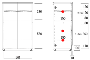 ![]() 【 内寸法 】画像クリックで拡大表示 ※●印は可動棚です。 |
