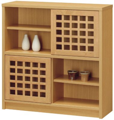 | 格子が品のある、やさしい和家具。 | 整然と並んだ格子の緊張感とやさしい色合いが、 落ち着いた品のあるお部屋を演出します。 |
