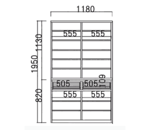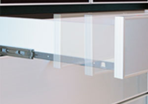 ![]() フルスライドレール 引出にはフルスライドレールを使用している為、奥のものまで出し入れが容易です。 |