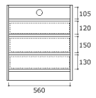 | 下 左から ・袖キャビネット(R-600-SD) ・袖ラック(R-300-RK) |