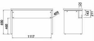 | ルーターやコードを収納できるポケットと、すっきり配線できるR加工(赤丸部分) |