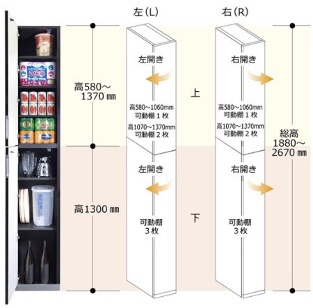 | サイドボックス上〈450〉 BH-HAL1 W200から400×D466 ×H580〜1370 |